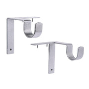 A corner window setup requires two curtain rods, one pair of curtain rod brackets (a left and right bracket) and two center support brackets.